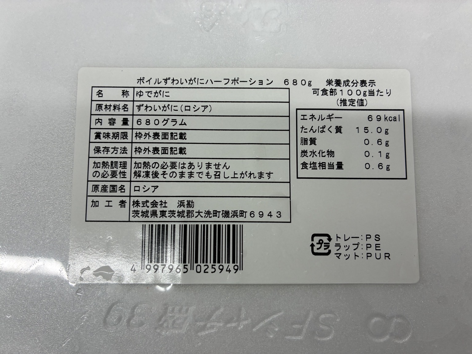 ズワイガニボイルハーフポーション約10.88kg