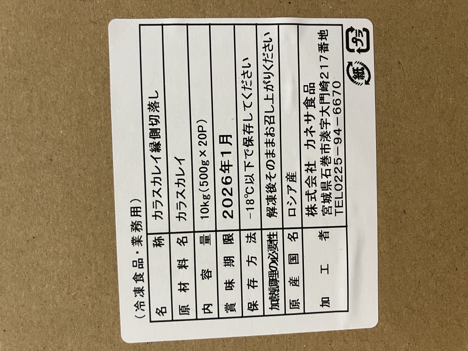 ロシア産 カラスカレイ縁側 切落し 10k(500g×20p) 刺身用