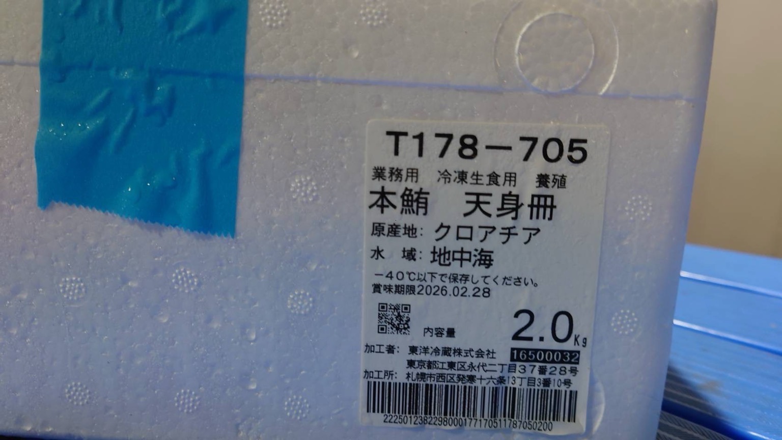 クロアチア産 養殖本マグロ天身柵 2k箱 賞味2026.02.28 の為、相場より安いです。 天身柵ですが、中トロとはうたえませんが養殖ですのでそれなりには脂あり。 100パーセント正味です。