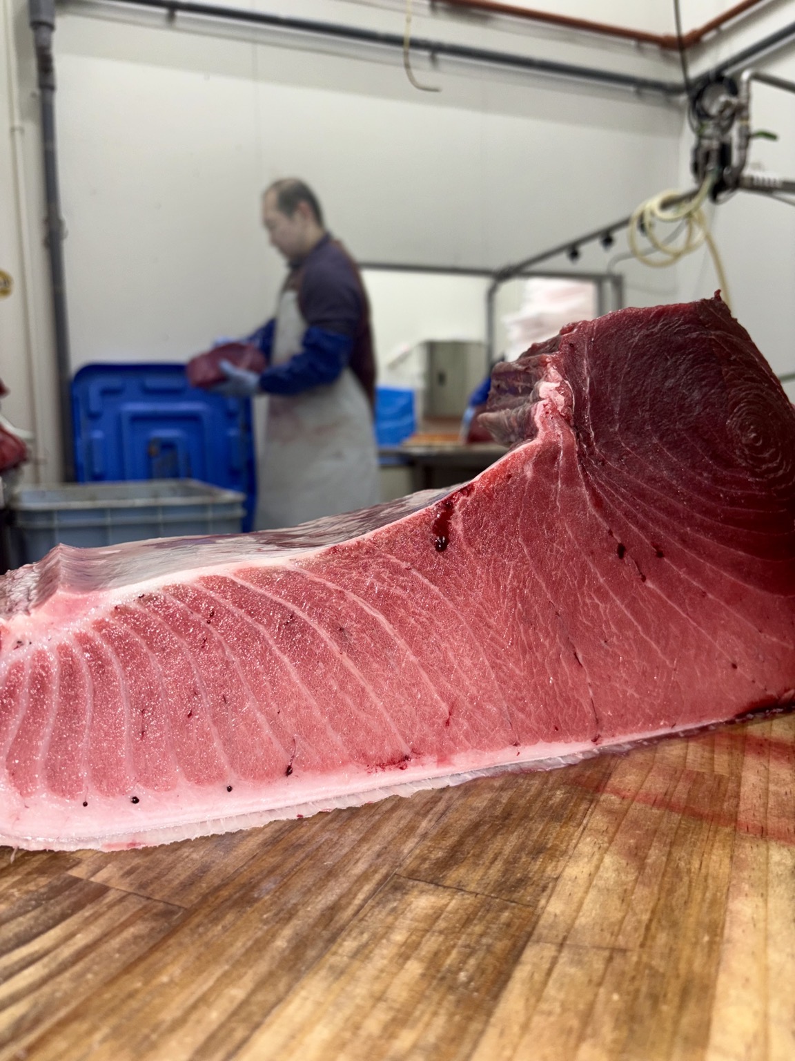 豊洲市場内に店を構える マグロ専門問屋の米川水産です。 豊洲市場買付 北海道寿都産 天然生本マグロ 定置網、脂がとても良い魚です 魚体170.6kg 宜しくお願い致します。