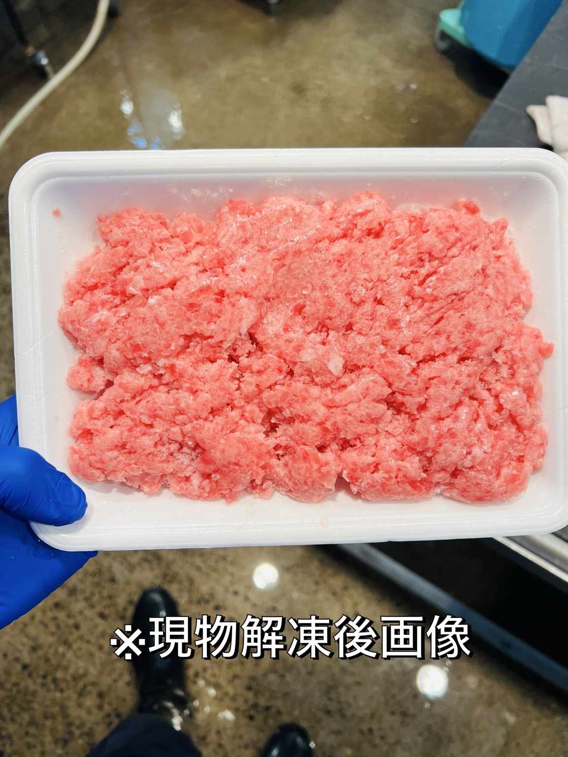 【冷凍 大目鉢鮪たたき】 〈原材料〉 メバチマグロ(太平洋・インド洋・その他)・植物油脂/pH調整剤・酸化防止剤(V.C.V.E) 〈内容量〉 500g×2P 〈賞味期限〉 6ヶ月以上 〈保存方法〉 要冷凍 ※−50℃以下で保存 【栄養成分表示】(100g当たり) 熱量:172.1kcal・蛋白質:20.9g・脂質:10.1g・炭水化物:0.7g・食塩相当量0.7g(推定値) 【商品ポイント】 原材料は、40上の大バチを使用していますので、色目も赤く鮮やかです! その他には、保存料を極力少なくし鮪本来の美味しいさを引き出しています。 食感にもこだわりがあり、粗挽き仕様で仕上げました。 類似商品は結構ありますが、 この商品(この仕様)は他には無い PB仕様の鮪たたきですのでおすすめします❗️ とても美味しく出来た商品です👌