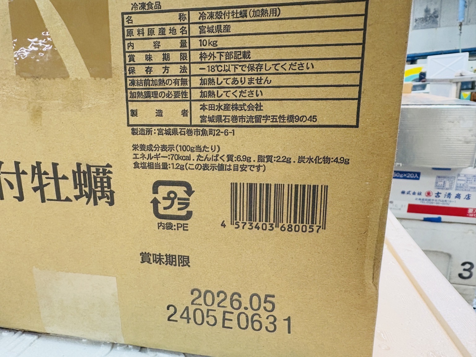 牡蠣(加熱用)10k(80-100個)/箱90入約10kg(養殖)【業務用の鮮魚仕入れならウーオ】