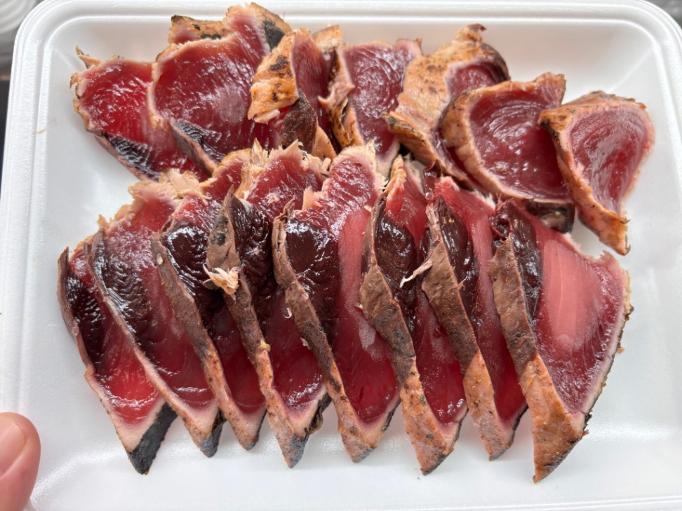 南鰹タタキ2.5上 1本釣りカツオの中でも鮮度の良い状態で凍結しました、 PS凍結より上のB1凍結になります。 写真の通り色もとても綺麗なカツオタタキになります。
