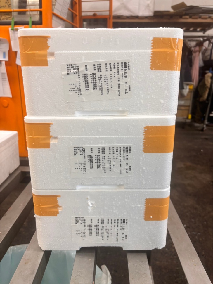 冷凍品のため豊洲着以外は、ヤマト便、佐川便。もしくはランテック便にて冷凍便で出荷致します。