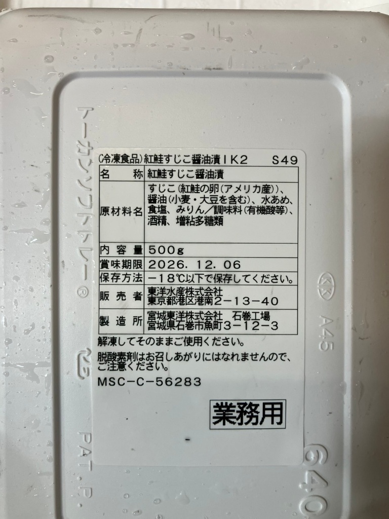 決算特価の紅鮭すじこ醤油漬けのご案内です。 ブランド:宮城東洋 賞味:26年12月11日以降 備考: おにぎり向けに製造された物で味付け濃く柔らかめです。 安い理由は決算の為です。