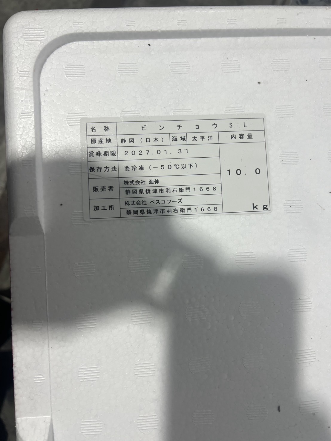 産地は外箱記載にて びん長まぐろスキンレス サイズ10上 10k箱