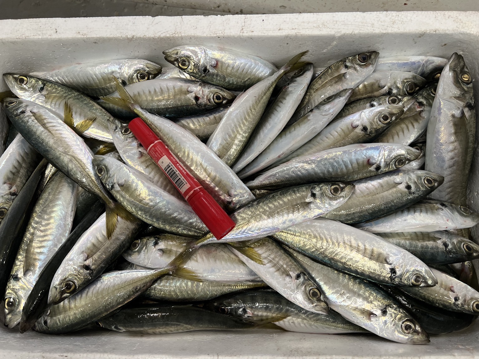 1/24、9時30分水揚げ 定置網 マルアジ、アオアジ 鮮度良し 小サイズ、バラ入り 1/25追加無し 雪のため延着ご了承でお願い致します