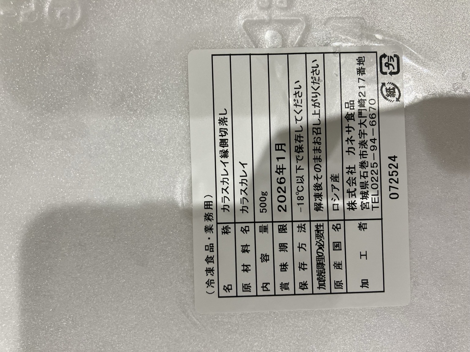 カナダ産 カラスカレイ縁側 切落し 10k(500g×20p) 刺身用 画像は産地ロシアですが、今はカナダです。