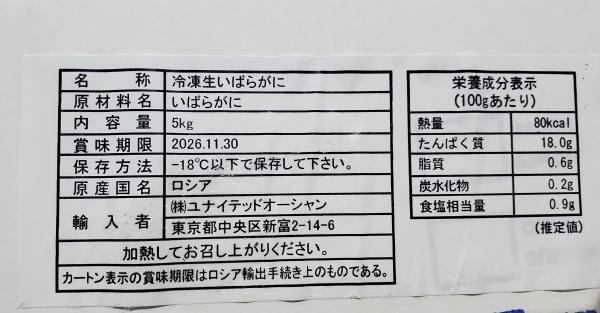 エゾイバラガニ5K/1ケース約5kg