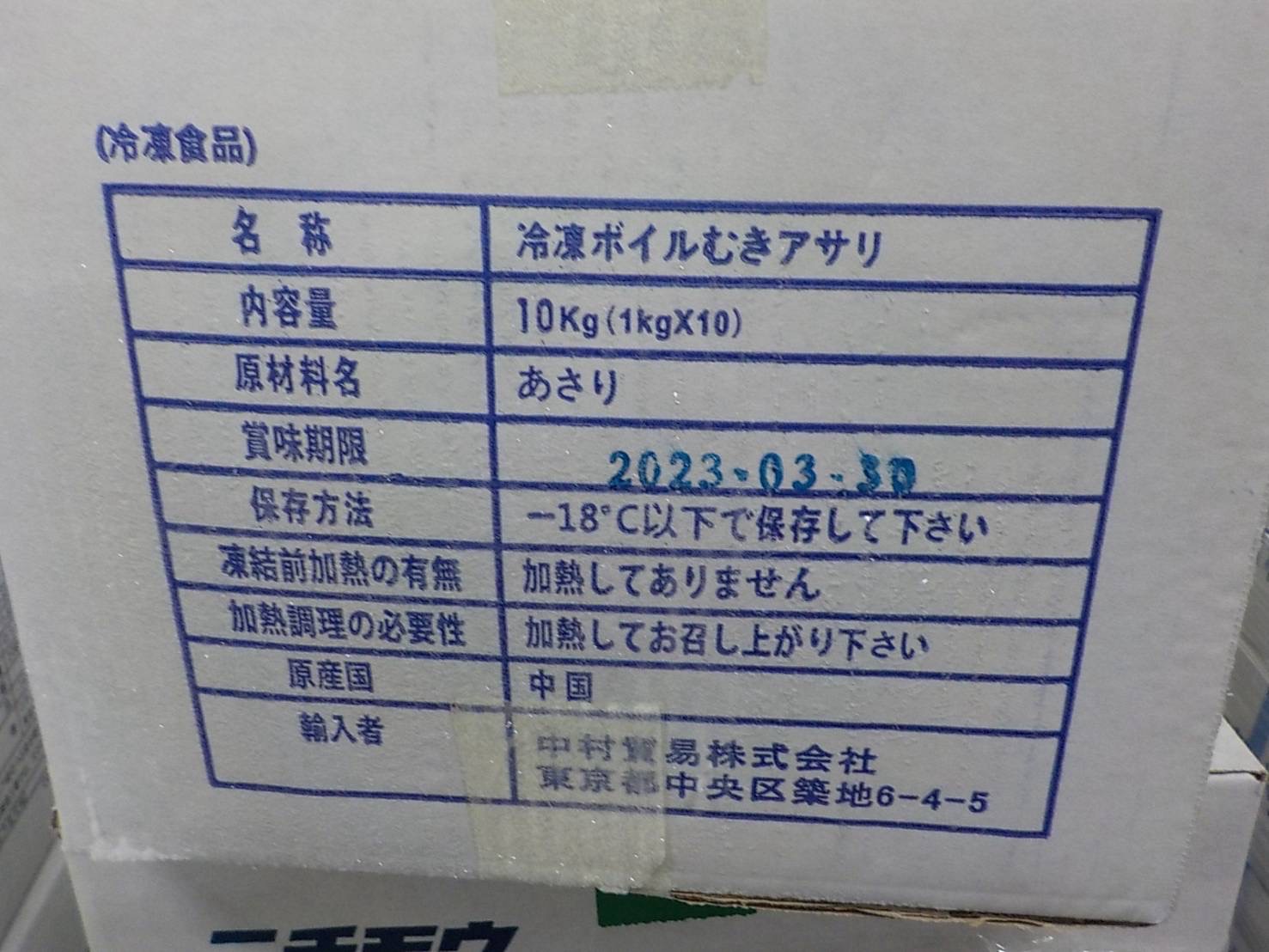 中国産 加熱用 冷凍 ボイルむきアサリ1k 1k袋×10