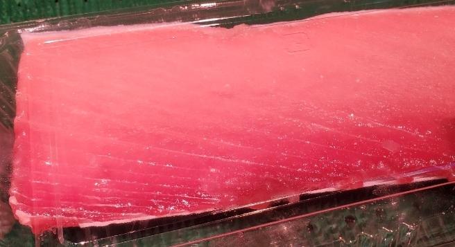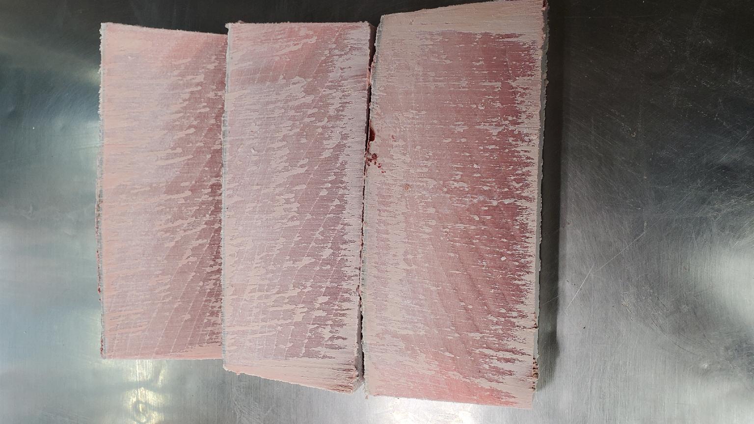 脂ありのバチマグロの腹中を大きめにカワラに取り、サクにカットした商品です。 部位は血合下~ハラモの隣のサクまで。ハラモ部分は除外しています。 およそですが規格👇️ 高さ8×厚さ2×長さ20cm 約500g/サク(血合下サクは約600g) 高さ8cmなので赤身とトロのグラデーションが綺麗です。横に半分カットしていただければ中トロと赤身で使い分けも可能です🔪