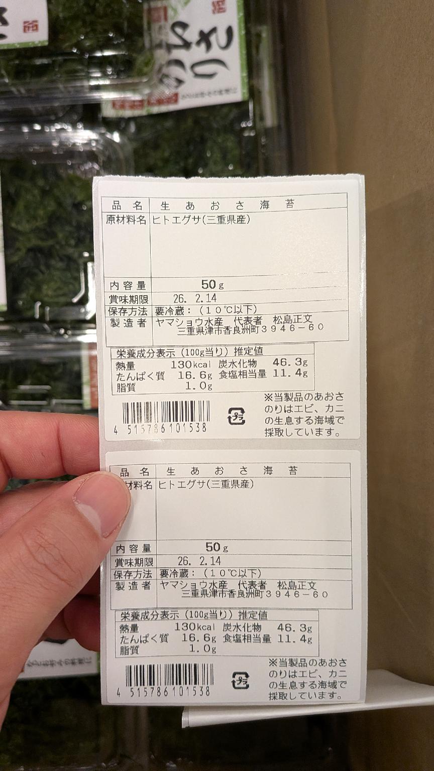 ヒトエグサ(アオサノリ)です。 天ぷら、味噌汁などに入れていただくと美味しく召し上がれます。 1パック50g×30入 午前中の注文で翌営業日の出荷予定です。 時化などにより出荷できない場合がございます。 賞味期限は出荷日+7日です。