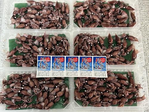新物!兵庫産ボイルホタルイカ! ホタルイカの季節になってきました! まだまだ出だしでサイズは小さいですが、鮮度もミソもバッチリです! 3連=3つ連結してる物