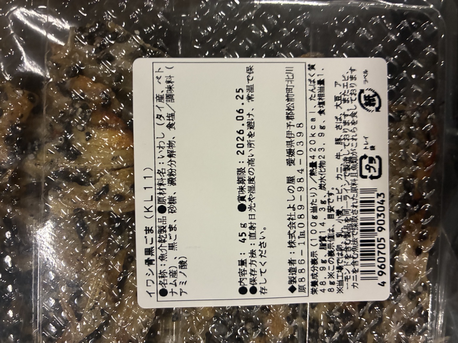 いわし骨せんべい 黒ごま 45g 20p×3 乾き珍味 常温販売 産地はメーカー所在地です。