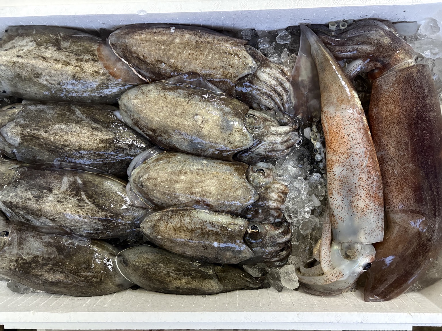 先程、定置網で水揚げされた鮮度の良いスルメイカ、シリヤケイカ、コウイカの入合になります。 スルメイカは、2尾930gで、シリヤケイカは、5尾1.8kg、コウイカは、4尾で1.27kg合計4kgになります。 鮮度が良いので、お刺身などどんな形にでもお使い頂けます。 宜しくお願い致します。