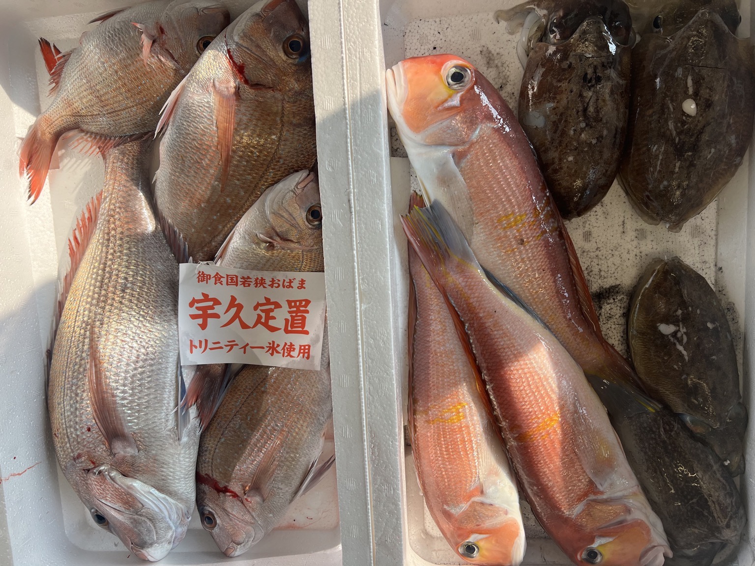 アマダイ、コウイカ、ヒラメ、マダイ
