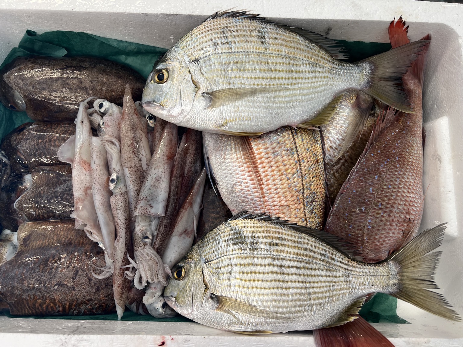 コウイカ、ヘダイ、マダイ、ヤリイカ