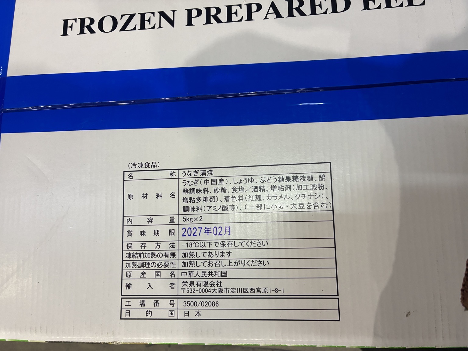 中国 ロストラータ うなぎ長焼 10k60尾 10k