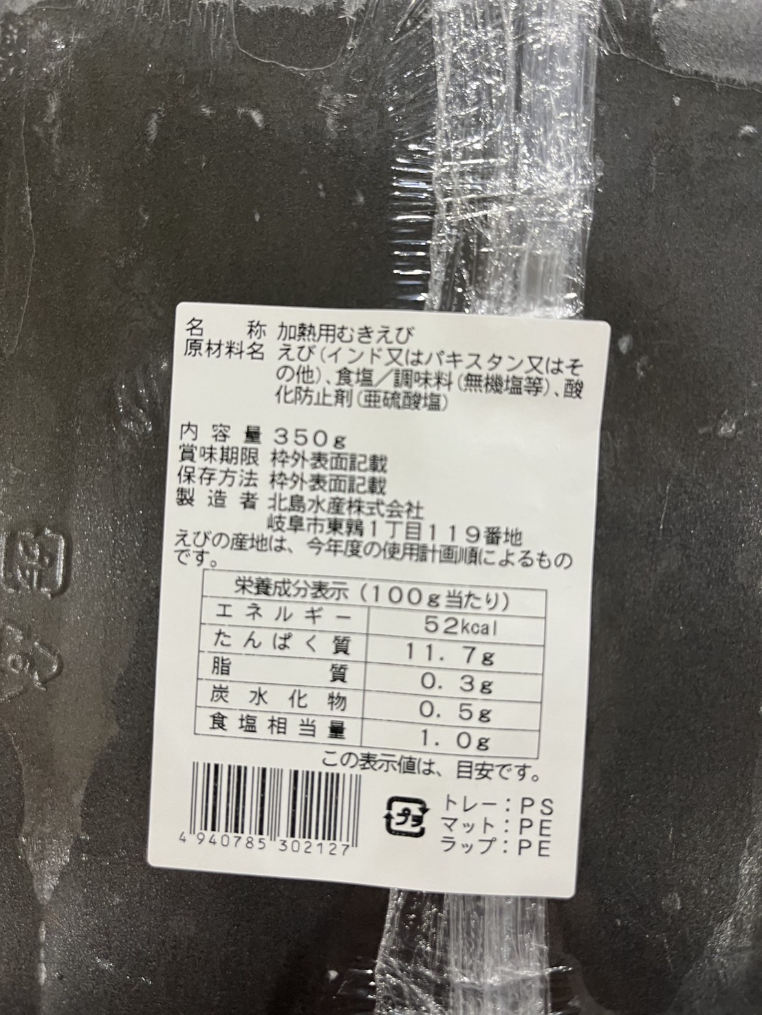 インド産、他 ジャンボむきえび net350g 10/20サイズ使用 12×2