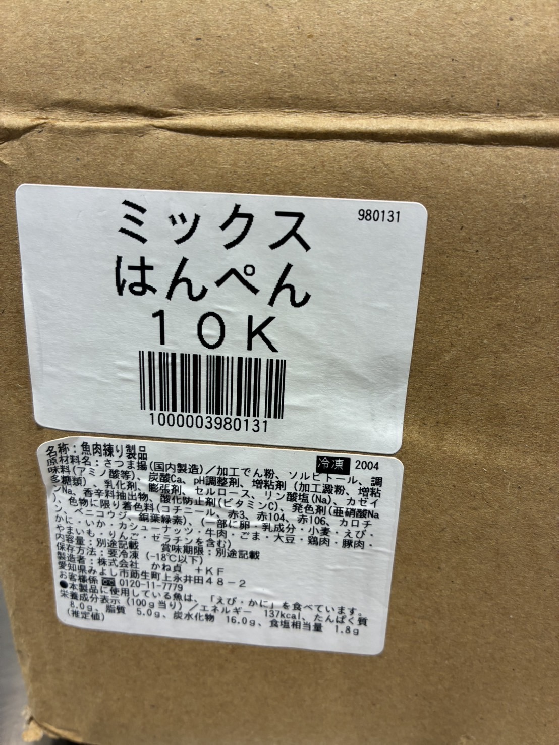 産地は加工地です。 冷凍 ミックスはんぺん(さつま揚げハネ) 10kバラ