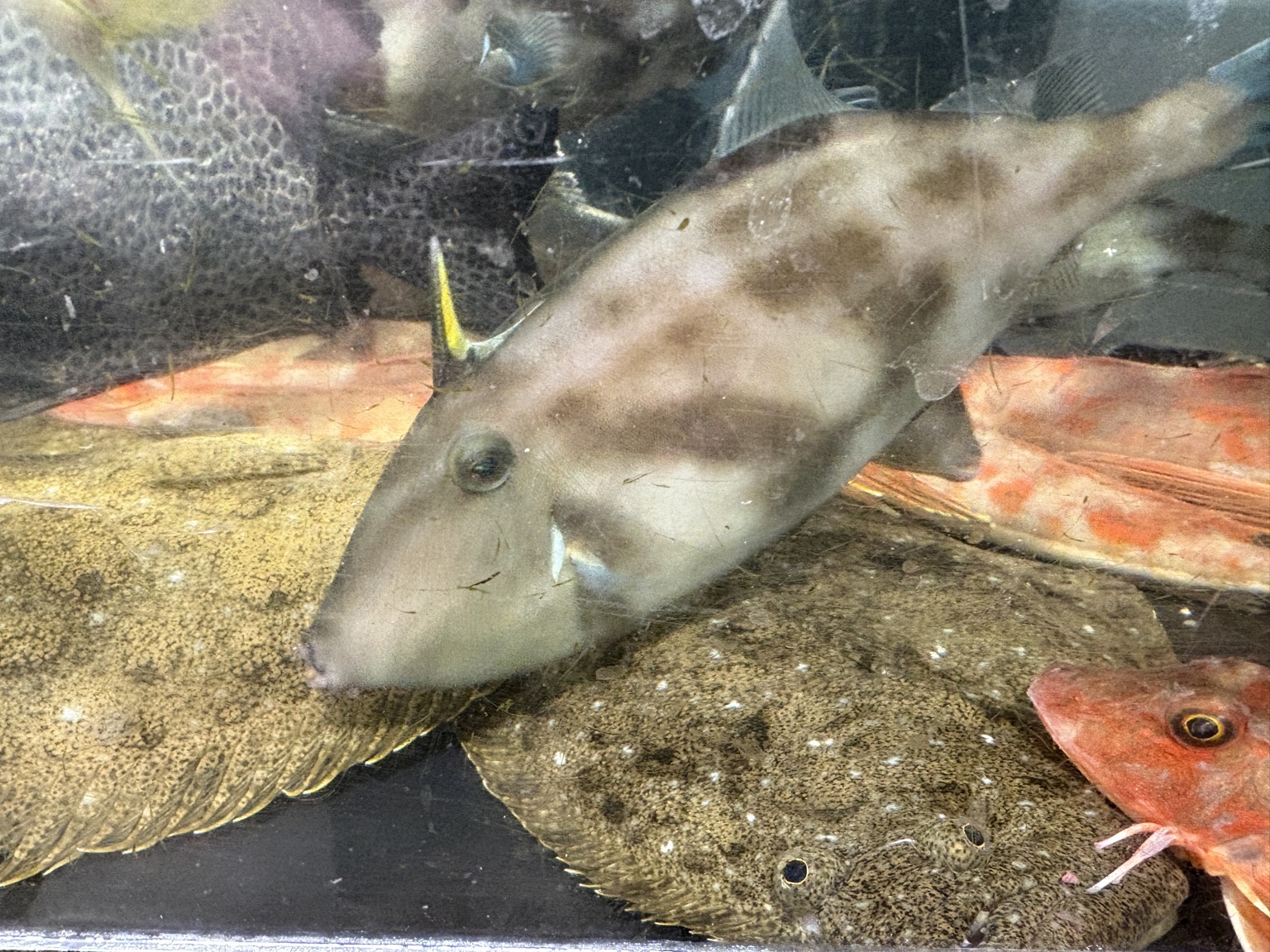 関東では本カワハギに比べ割安な馬ズラハギですが、本カワハギの旬の終盤(3月頃)から多く漁獲されます。 弊社では、主に定置網漁で獲れた活けのウマズラカワハギを入手し、活け締め・脱血・神経抜きを施しお届けいたします。 関西ではマルハゲ(本カワハギ)とウマハゲ(ウマズラハギ)と呼ばれるようで、鳥取でカワハギと言ったらウマヅラハギ🐴朝近海でとれているため、鮮度バッチリです。 余談になりますが、伊豆網代では50年ほど前ウマズラハギが異常発生、ギザギザの背鰭が網・漁具を傷つけるので嫌がられていました。そんな中、大量の水産資源をなんとかしたいと網代の匠の干物屋さんと弊社の先代が提案して、漁業関係者の奥さん、ご近所の主婦さんとで“カワハギの味醂干し”を制作 網代名物のカワハギの味醂干しが誕生しました。