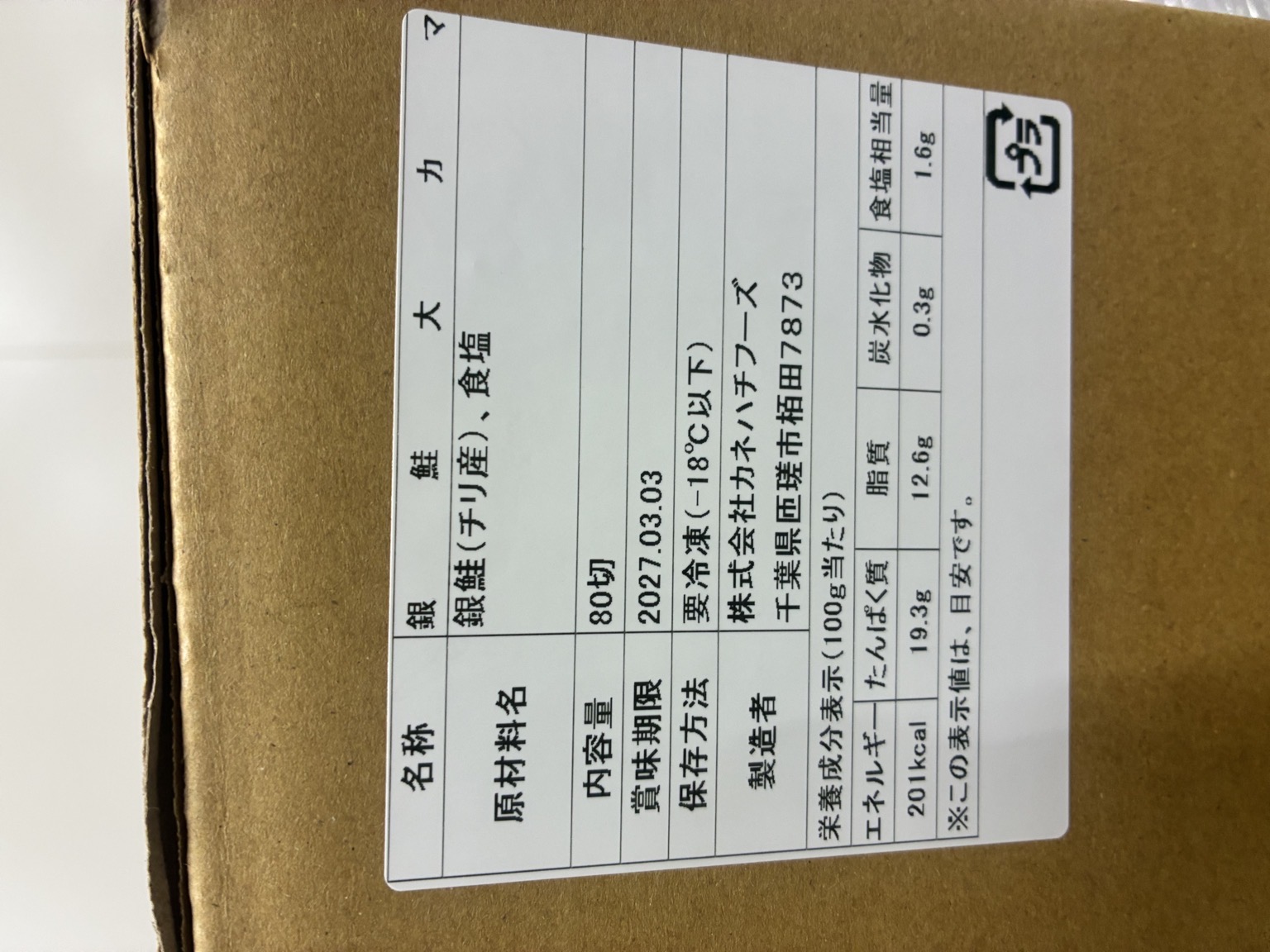 チリ産 塩銀鮭カマ 80個入れ 1個120g前後 大小あります。 1箱10k位です。