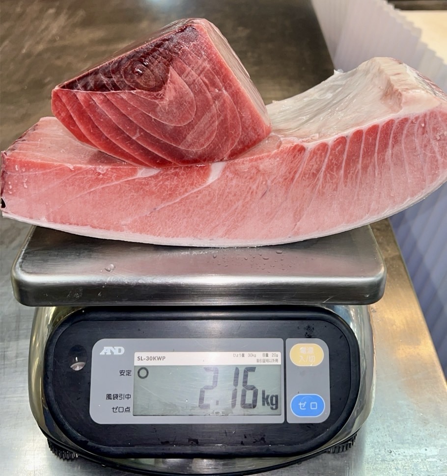 ご注文頂いてから、ブロックを小割りしてセラミスト除菌してから真空パック加工致します。 ※真空の特性状、開けて水分を拭いていただき、冷蔵庫にて色出しをすることで発色して綺麗な身の色になります。