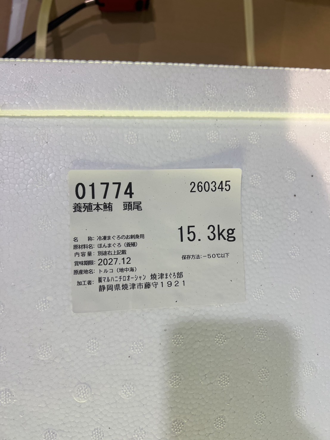 トルコ産 養殖本マグロ 尾頭 8/15k不定貫 原料 背ロイン20/40