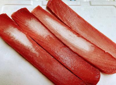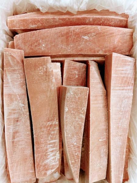 ご好評いただいてるめばちまぐろのサクのご案内です! 売りはもちろん”一本一本解凍し、色目のチェックを入れている事” スキンレスで血合いはもちろん、ハラスもとってありますし、筋の強い尾もネギトロ用に大きく外しています。 ただ、シミや傷などを取るので大きさや長さはバラバラです。 しかし、しっかり選別が入った上バチがこのお値段ですのでとてもお得だと思います。 原料高のこの時期是非ともお勧めいたします。