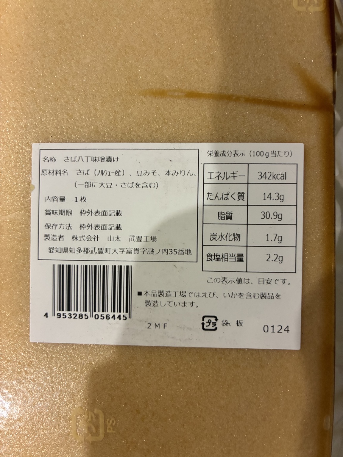 サバ漬魚さば八丁味噌板付き約4.5kg【業務用の鮮魚仕入れならウーオ】