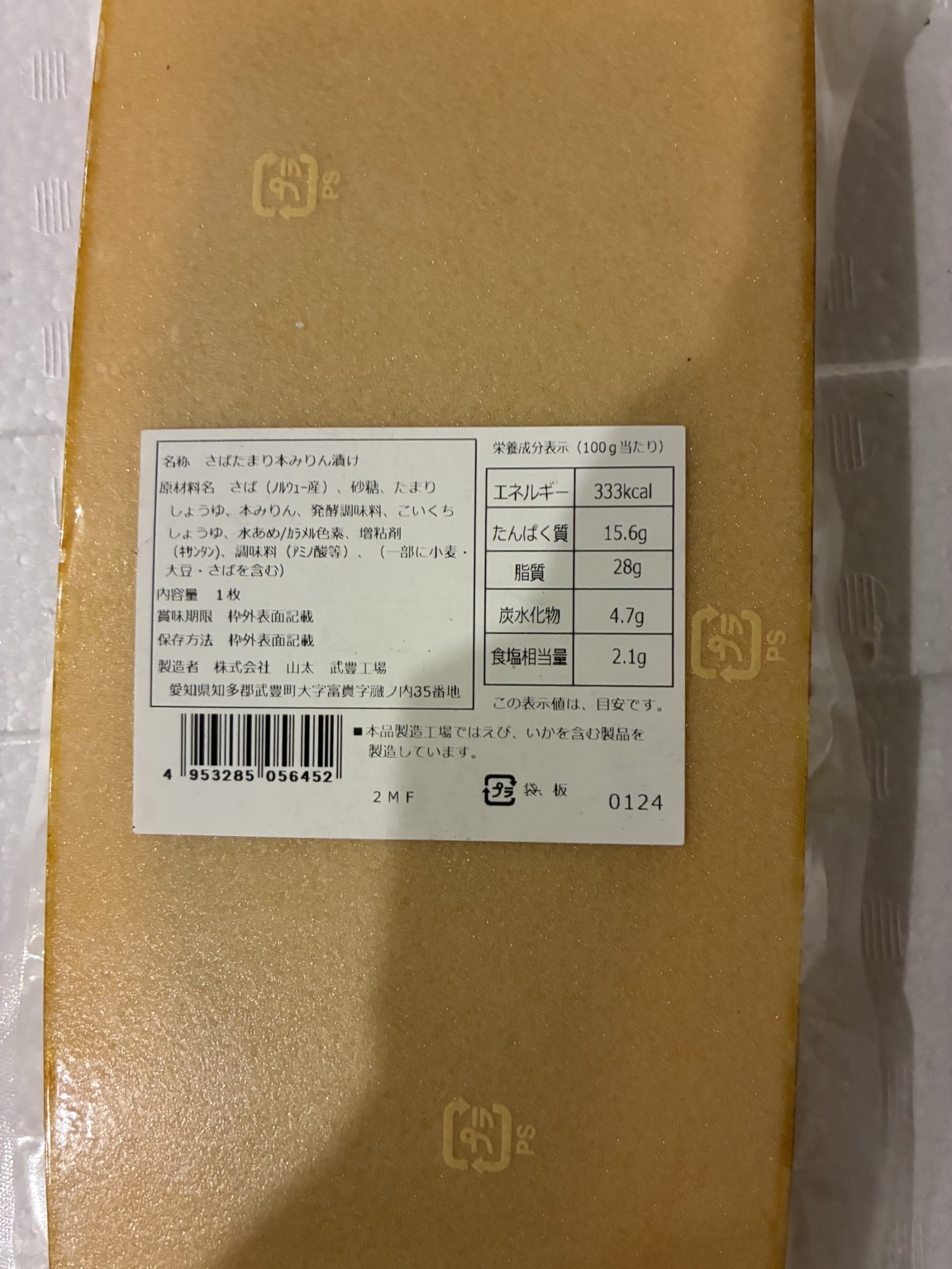 サバ漬魚さばたまり本みりん板付き約4.5kg