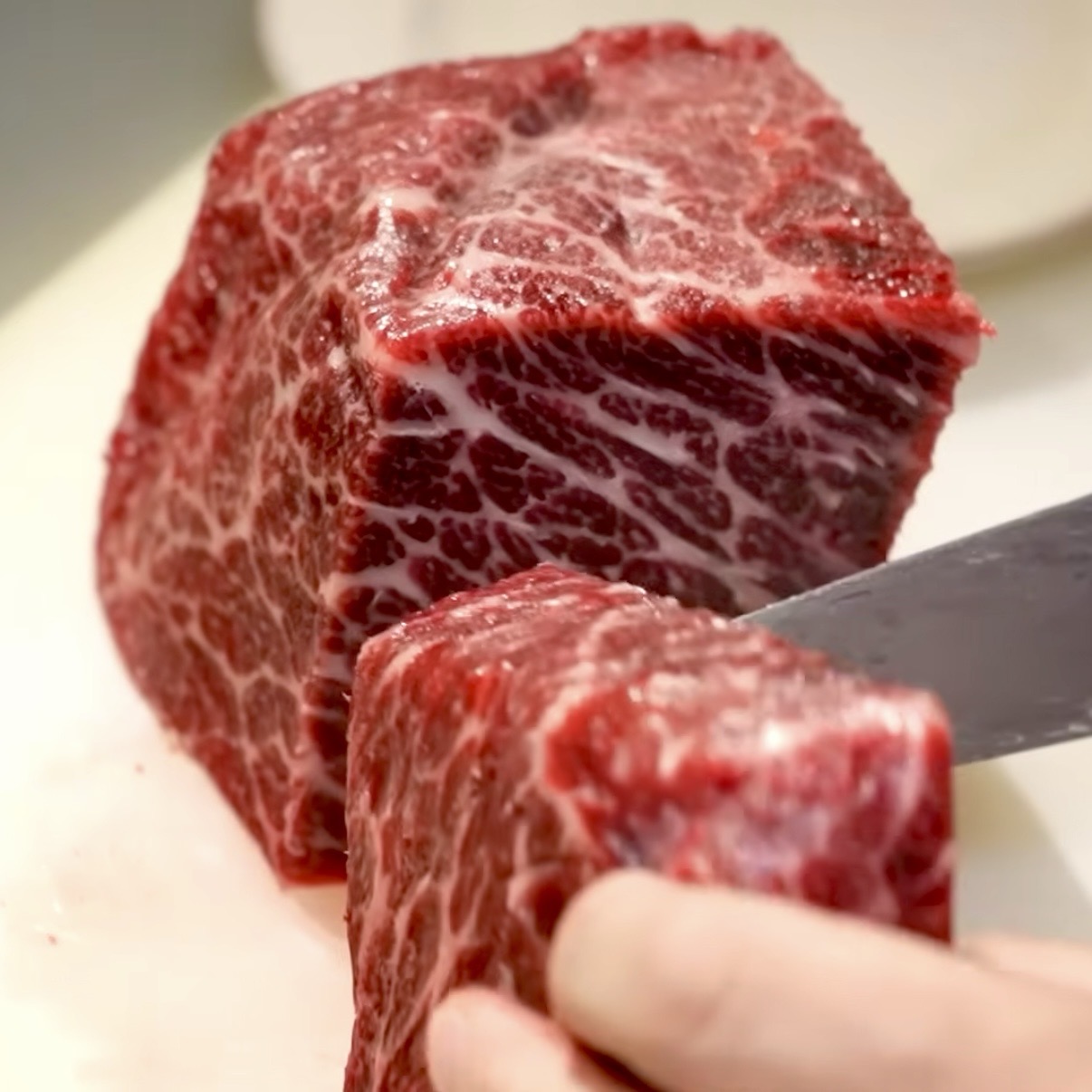 尾の付け根にある鯨の大トロ。 幻と言われるほどの希少部位。 刺身やタタキがおすすめです。 形は不定になります。 ※真空パックから出して冷蔵庫でゆっくり解凍してください。 真空パック解凍、常温解凍、流水解凍、温水解凍は硬化するのでNGです。