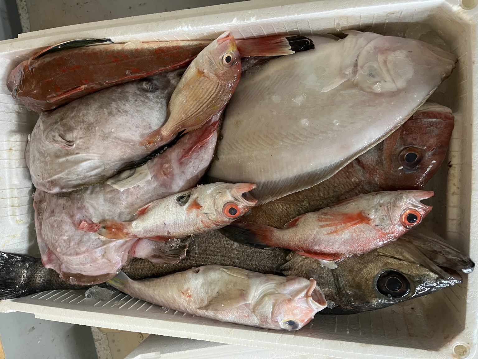 アカムツ、アンコウ、スズキ、ノドグロ(アカムツ)、ホウボウ、マダイ、ミズガレイ