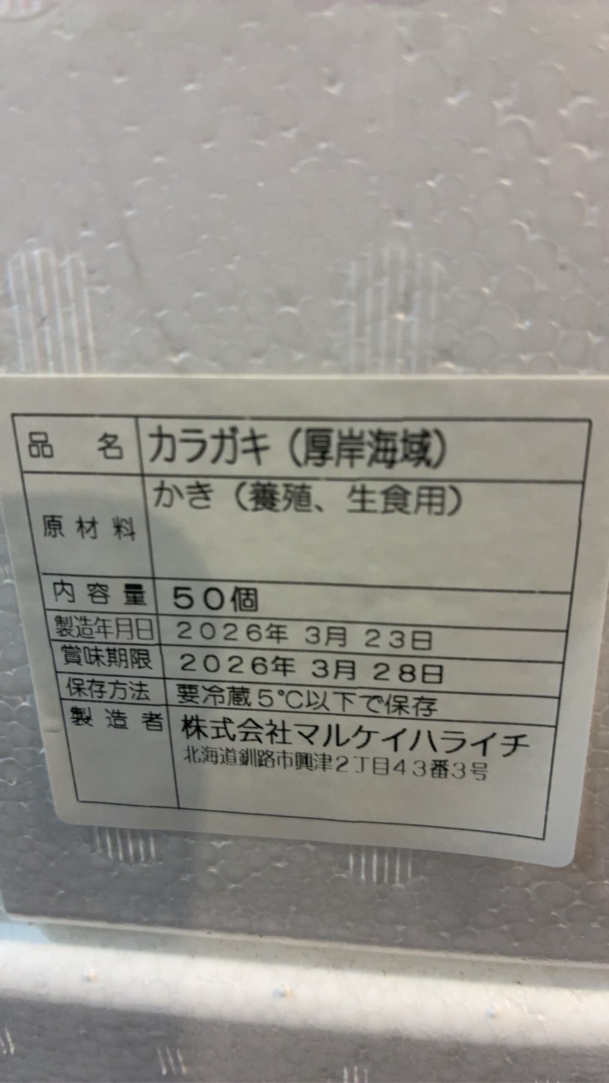 厚岸 殻付きかき 50入です 消費期限は3/28です!