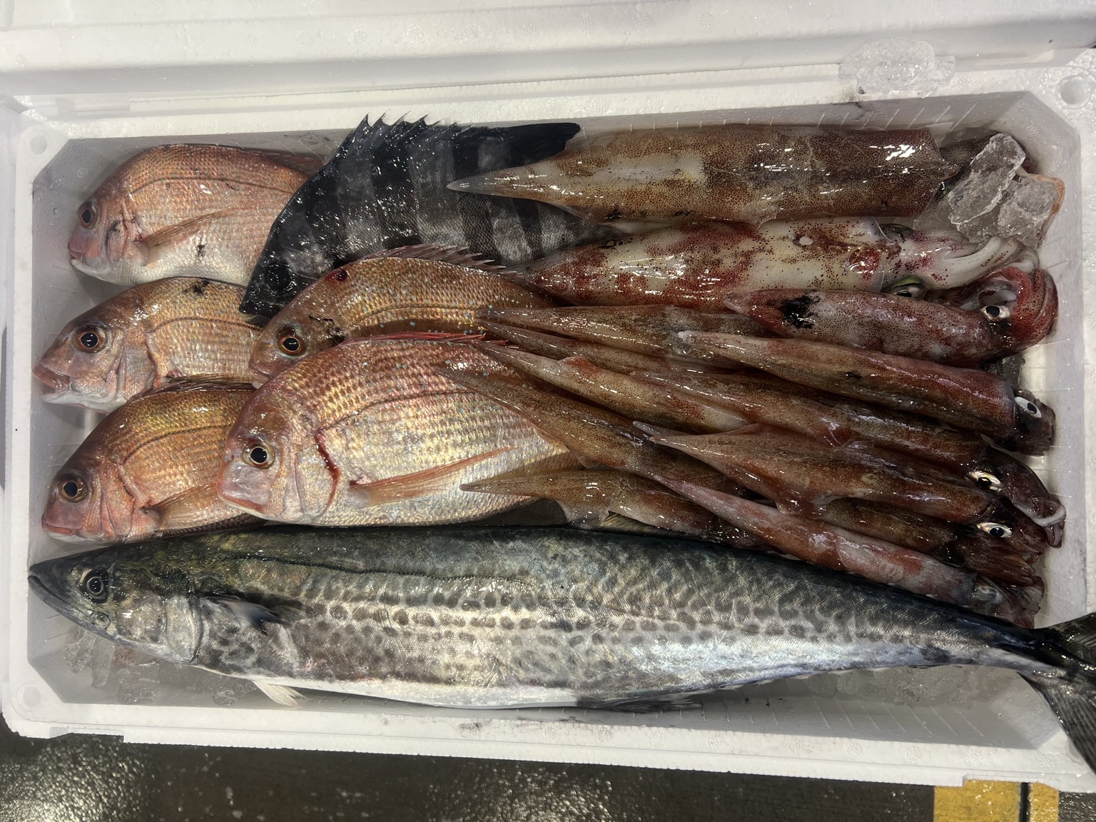 ケンサキイカ、サゴシ、チダイ、マダイ、ヤリイカ