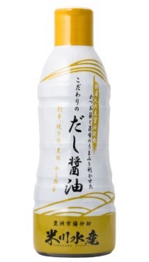 「こだわりのだし醤油」は厳選された丸大豆を使用し、かつお節と昆布をふんだんに取り入うれた風味豊かな逸品です。 豊洲市場仲卸米川水産が、80年以上の経験と技術を活かし1年以上の年月を費やし開発致しました。 特にお刺身、お寿司に絶好にマッチし、その美味さを一層引き立てます。 卵かけご飯、冷奴、納豆等日常の一鉢も特別な一鉢に格上げ致します。 どうぞ「こだわりのだし醤油」でワンランクアップした食事をお楽しみくださいませ!