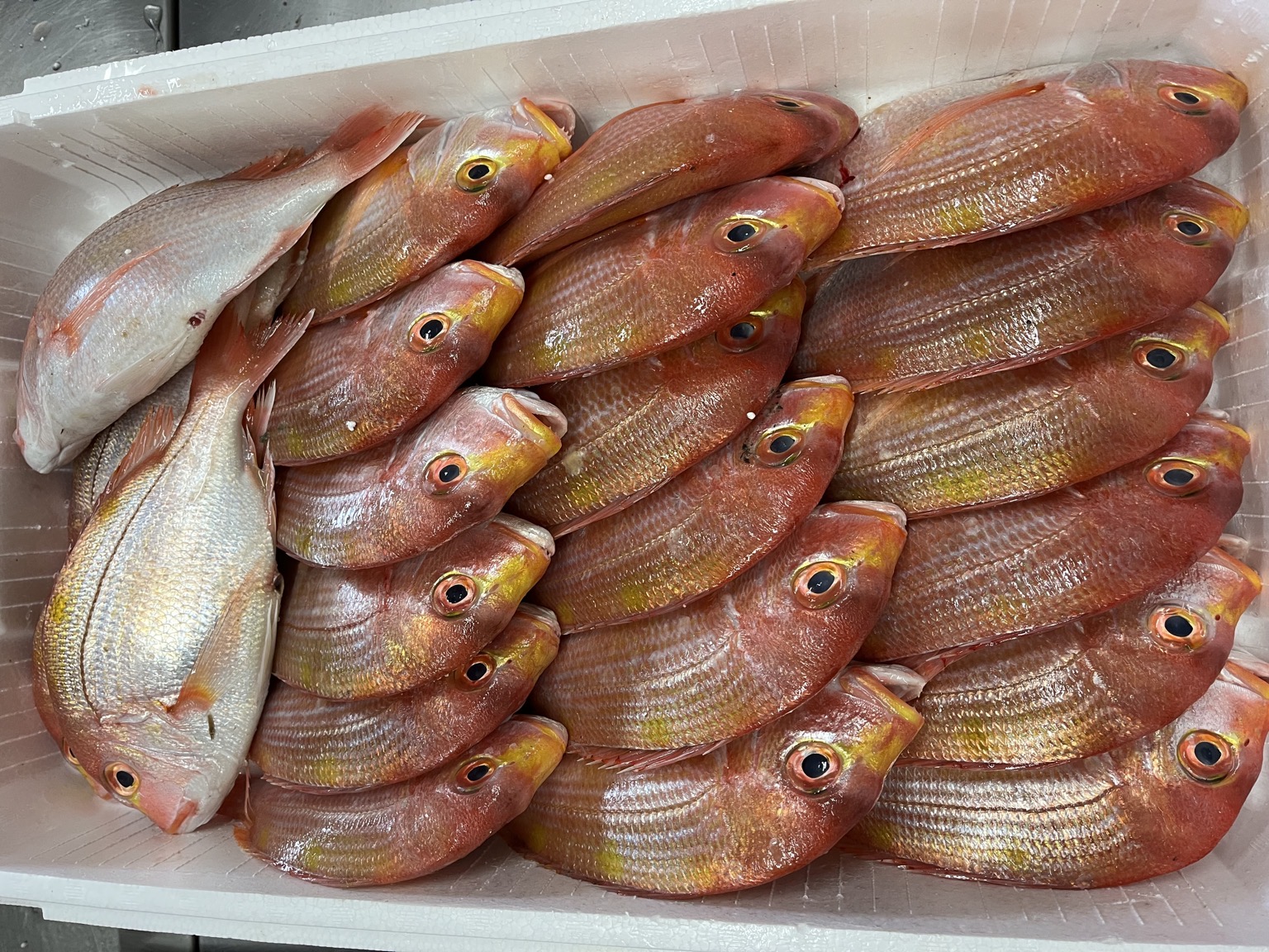日帰り漁の底曳網で水揚げされました。止めもの柔らかめ処分価格でよろしくお願いします。