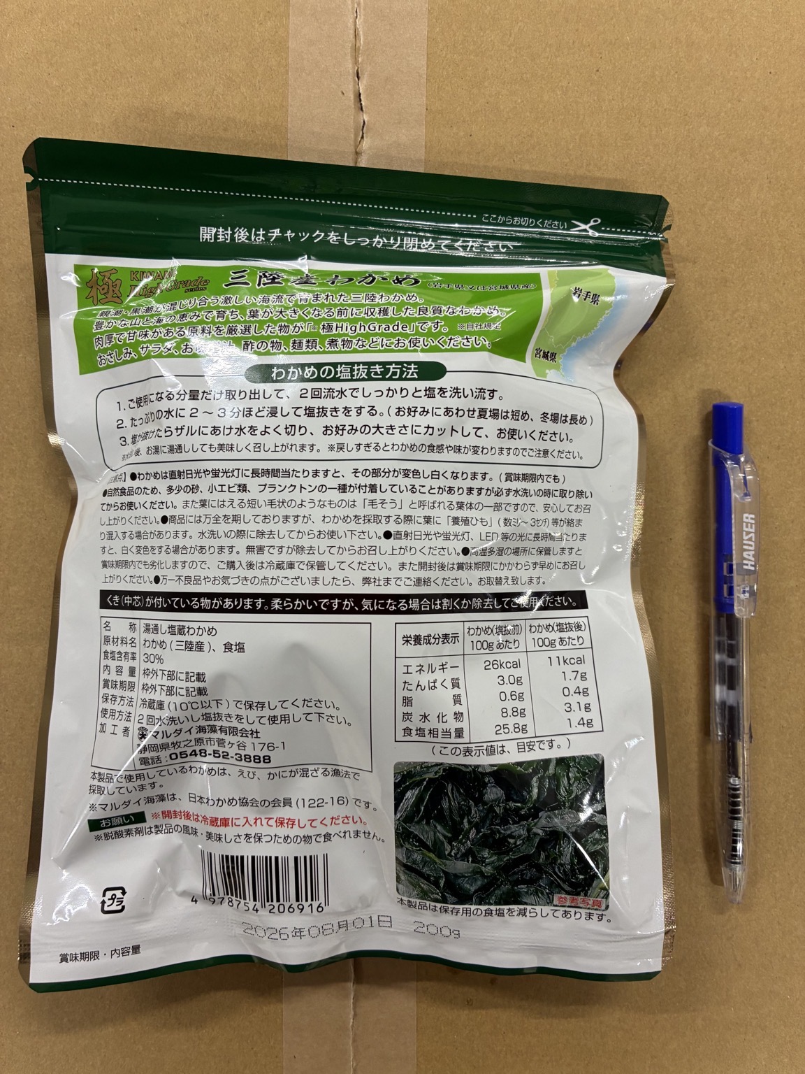三陸産 塩蔵わかめ200g 20入 塩分含有率30% 要冷蔵販売