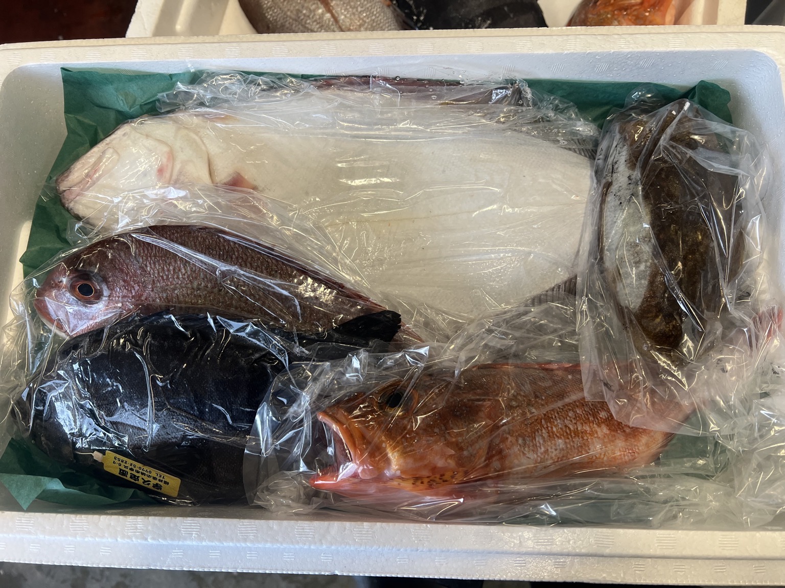 4/7水揚げ 活〆ヒラメ一枚 イシダイ一枚 カサゴ1本 マダイ一枚 コウイカ1杯 イカ以外は鱗内臓処理済み、処理済み後の目方です 刺身◯ 短時間出品