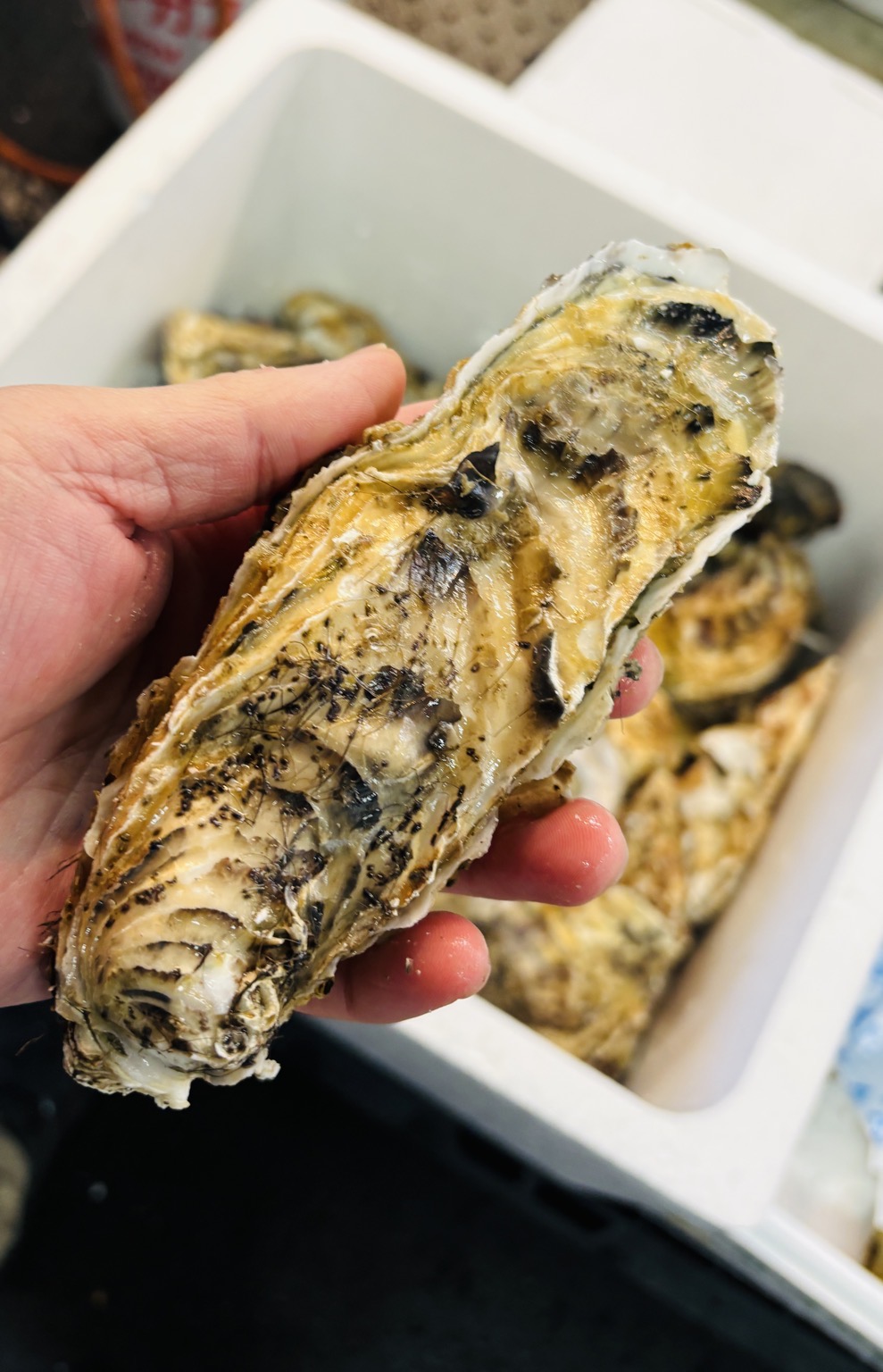 北海道噴火湾産の殻付牡蠣です。4月に入り身入りも良くなってきました、サイズは200gアップ、大人男性の手に乗せても大きいサイズ、生食可の生牡蠣です。 浄化水槽で活かし込みしているので状態良く出荷出来ます、生牡蠣、焼き牡蠣、蒸し牡蠣でご提供OK、よろしくお願いします!