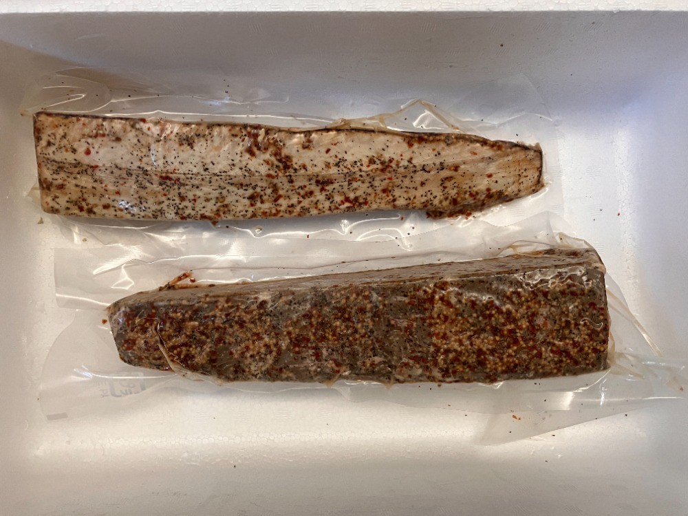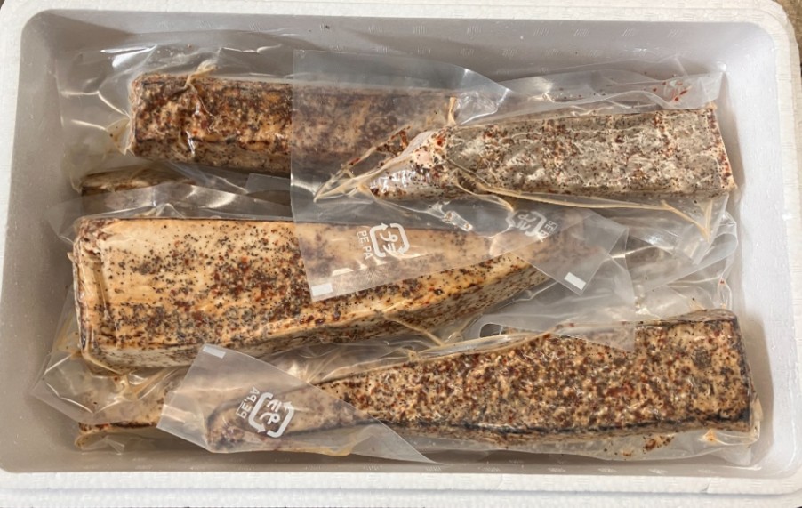 解凍して切るだけで即提供可能! お酒との相性抜群!味付け済みのため切るだけで一品に! びんちょうまぐろを炙り、スパイスで味付けをしました。 炙りの香ばしさの中に、スパイスの刺激が加わり、前菜としてぴったりな商品です。 居酒屋の1品メニューやサラダ、パスタなどアレンジ自在! ぜひ皆様のお店に合わせたアレンジでお客様にご提供ください。