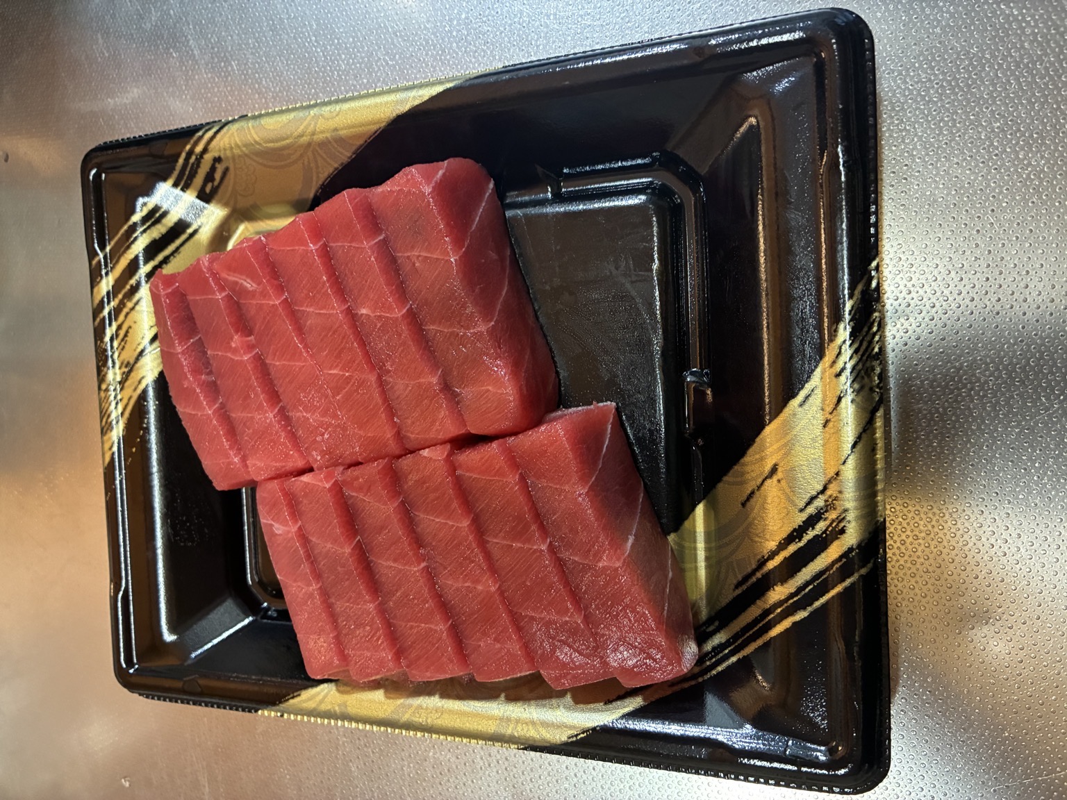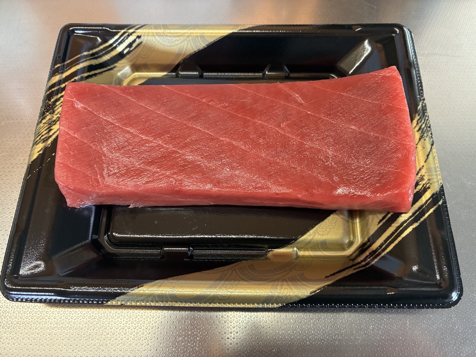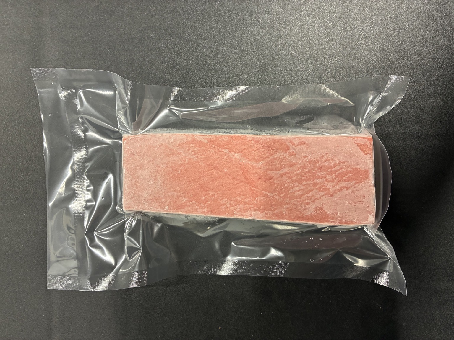 生の状態から可食部100%の短冊(不定貫)に切り分け、急速凍結をして真空包装し、その後-60度保管し、なるべく品質を落とさないよう管理しております。 トレーに乗った短冊の画像は、流水解凍後すぐに真空袋から取り出したものです。 解凍後、真空袋のまま冷蔵で保管すると品質低下及び変色します。解凍後は、真空袋から取り出してなるべく早くご使用下さい。 短冊サイズ 約200g前後