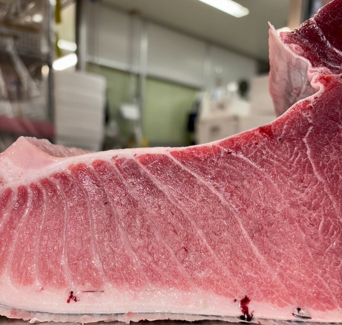 マグロの場合、部位によって筋が多い部分もありますのでご了承ください。(背上・背下・腹下)