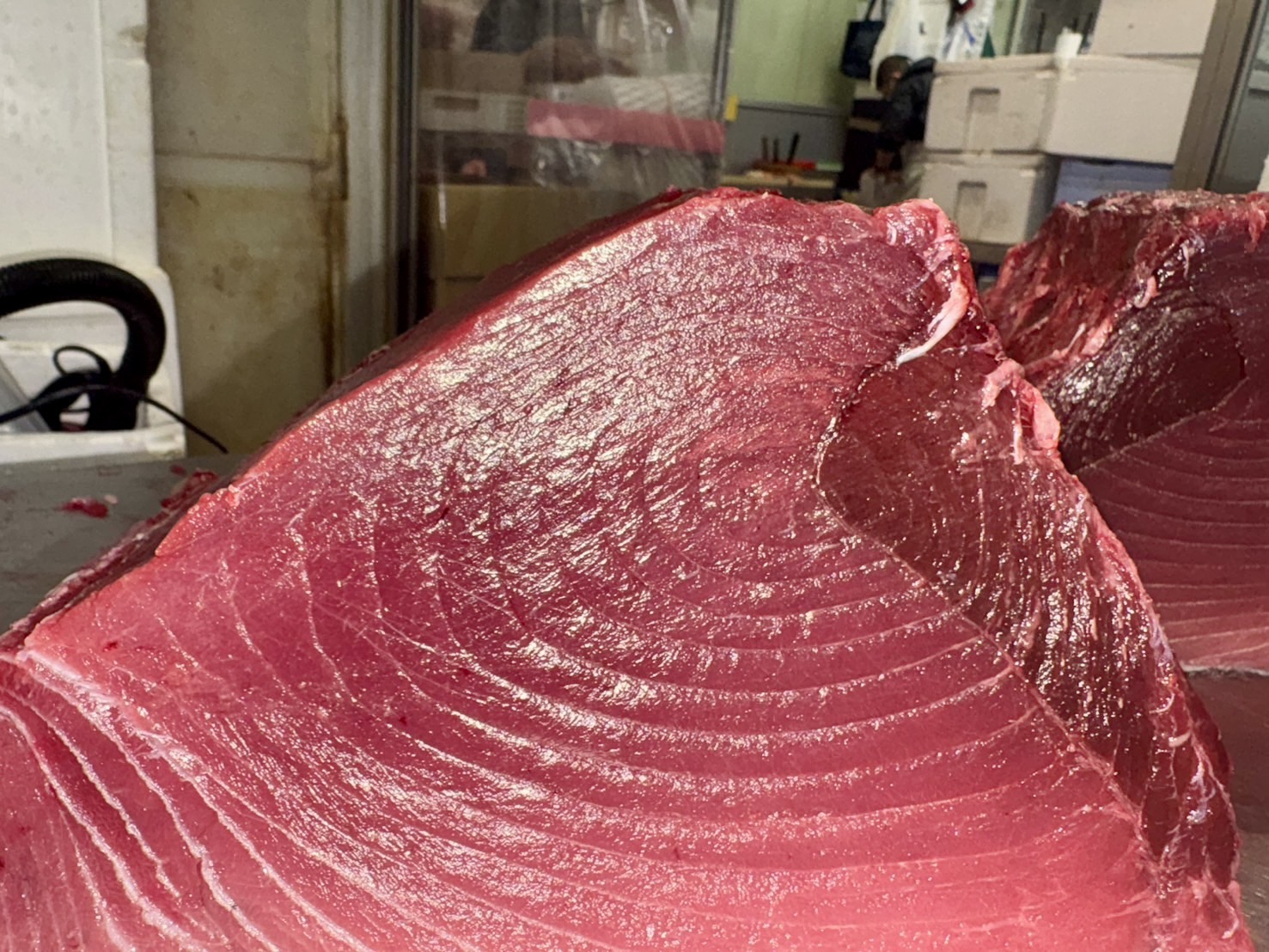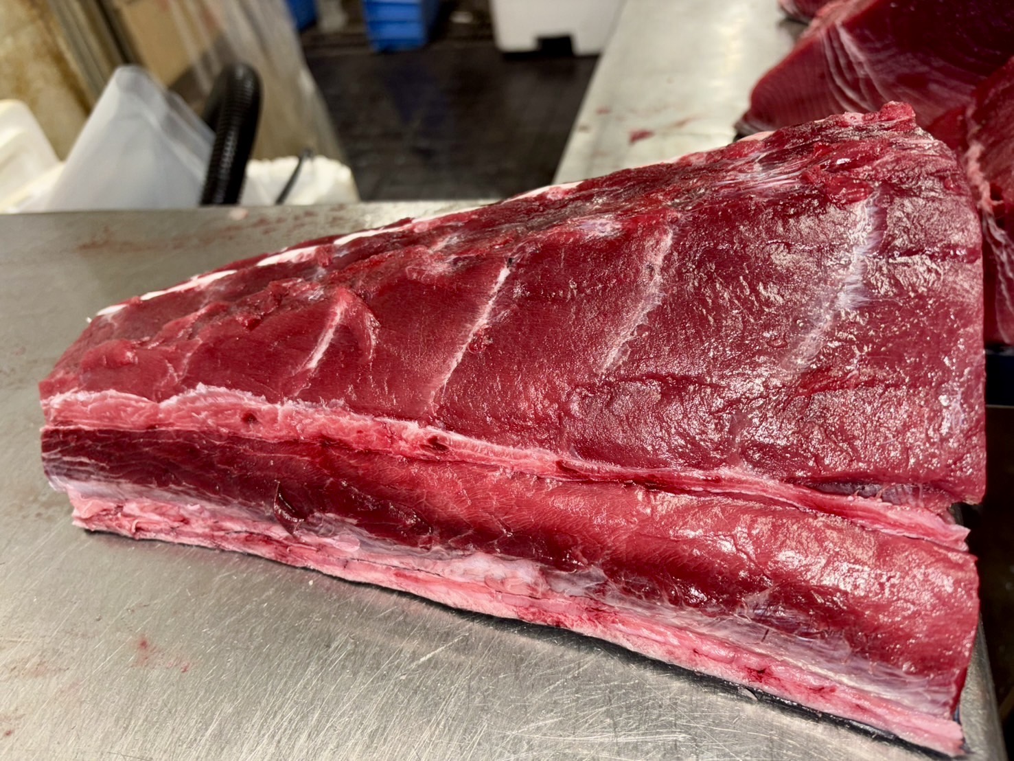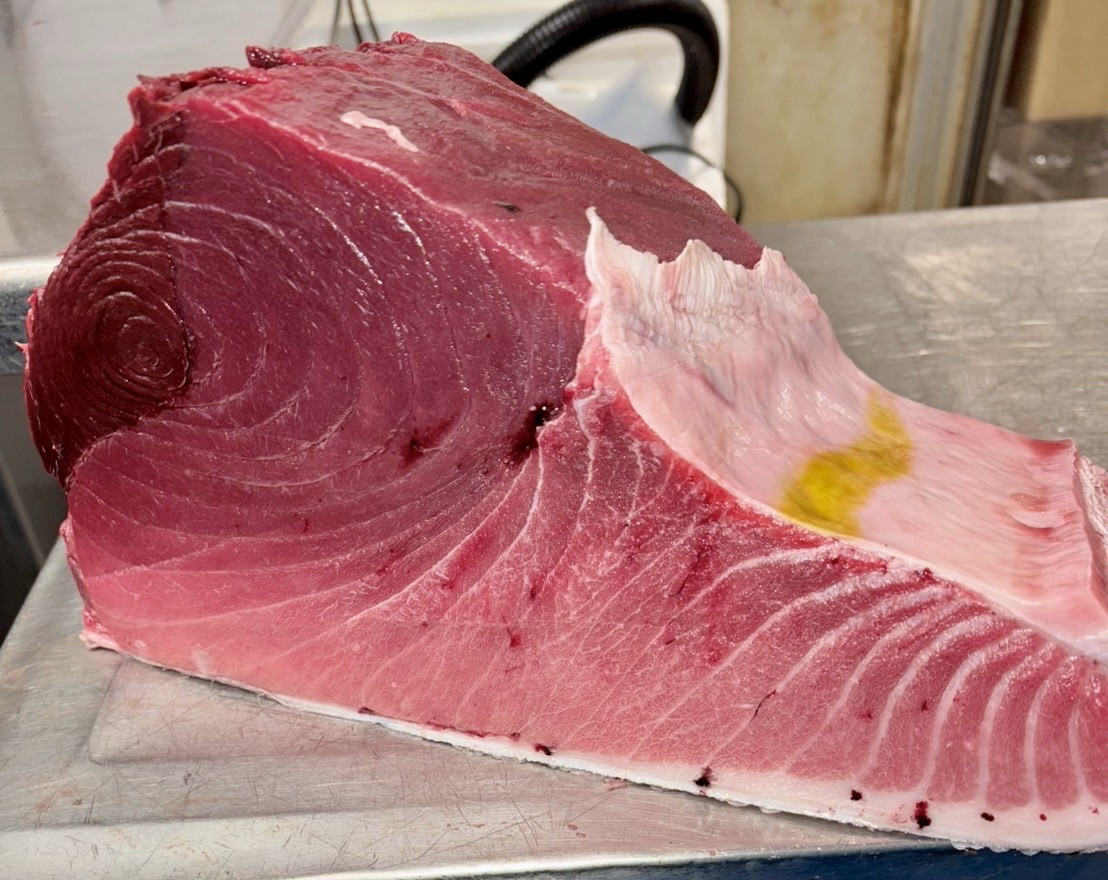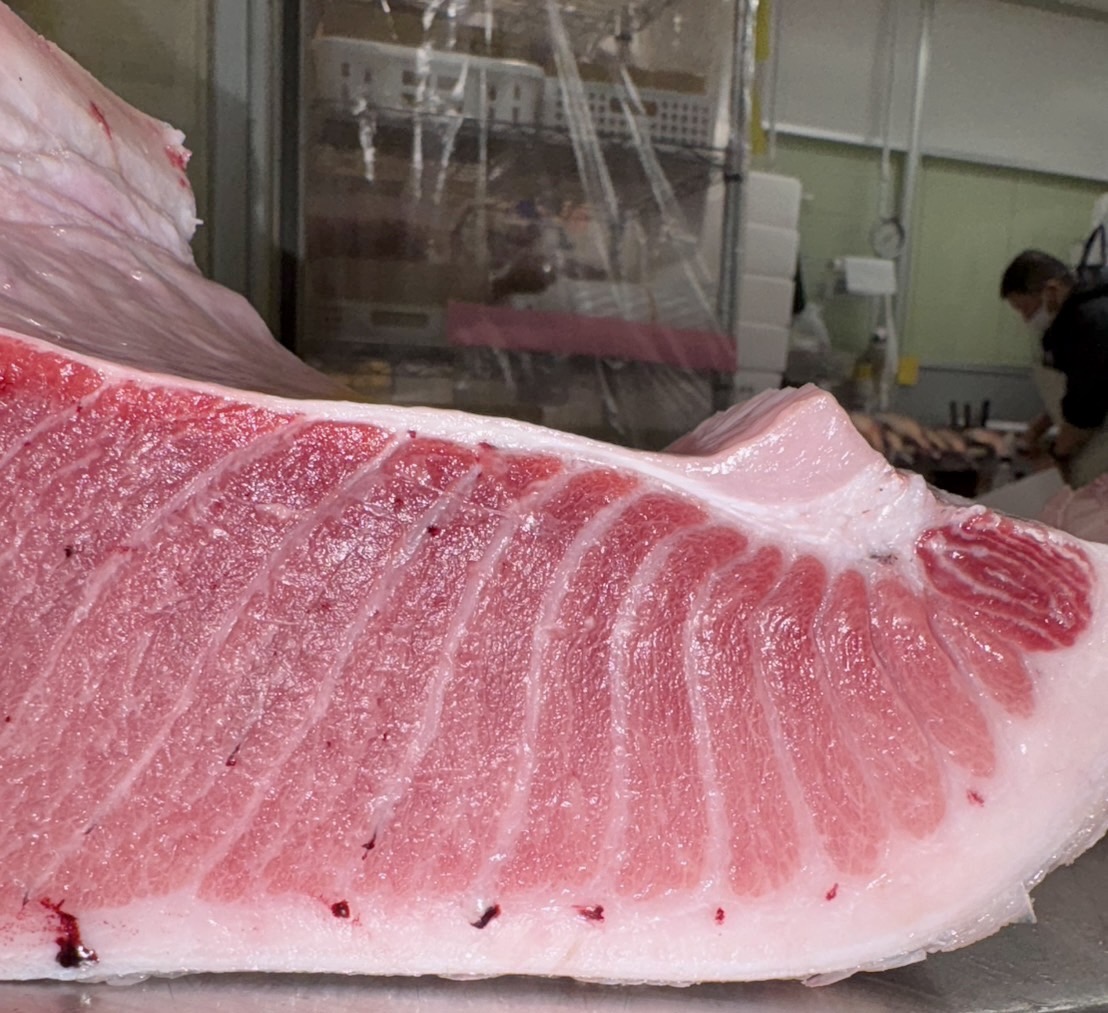 おはようございます 豊洲市場総合仲卸米川水産です。 本日豊洲市場買付 宮城塩釜産 天然生本マグロ 巻網 魚体122.4kg 是非宜しくお願い致します。