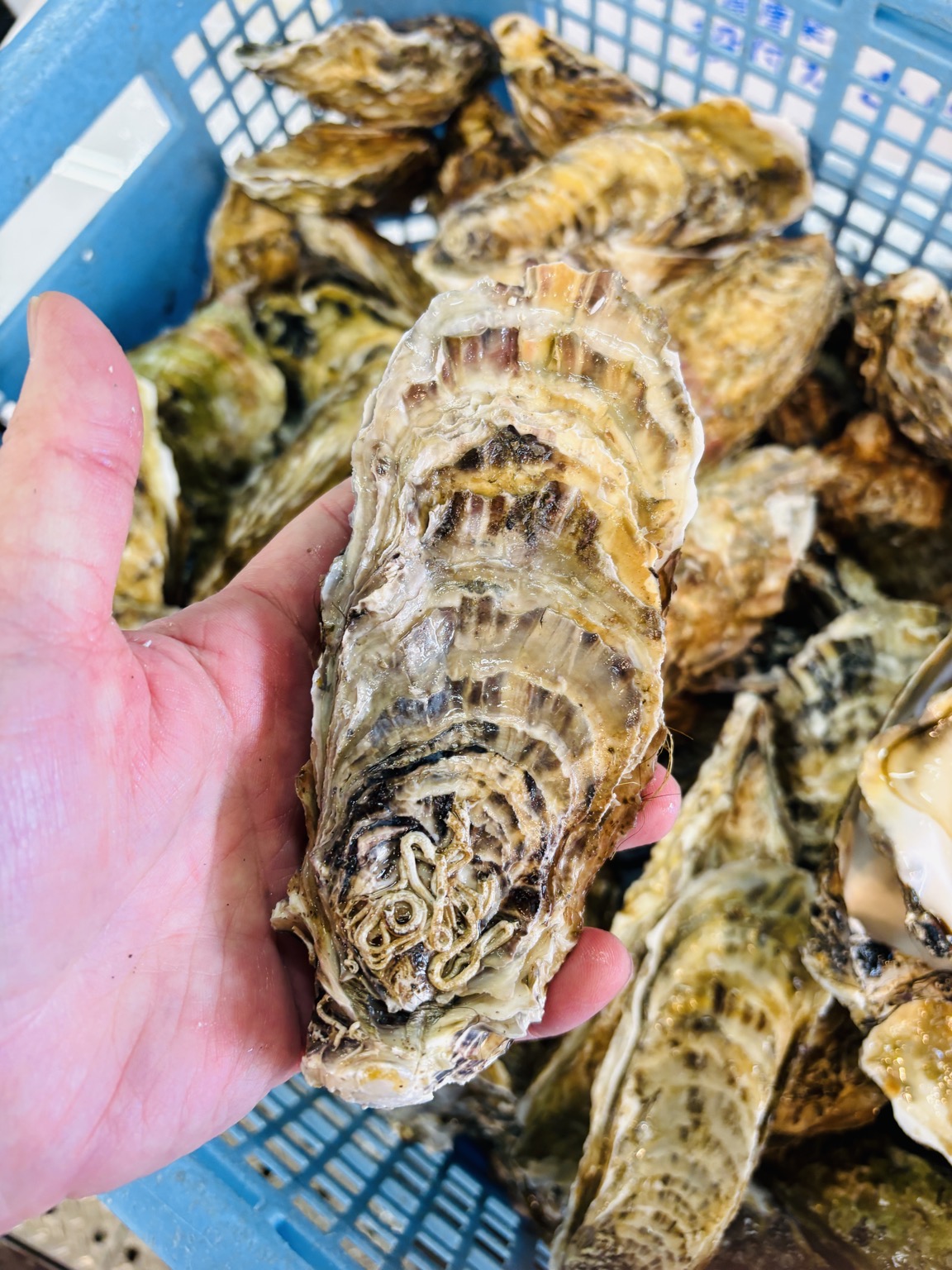 北海道噴火湾産の殻付牡蠣です。4月に入り身入りも良くなってきました、サイズは200gアップ、大人男性の手に乗せても大きいサイズ、生食可の生牡蠣です。 浄化水槽で活かし込みしているので状態良く出荷出来ます、生牡蠣、焼き牡蠣、蒸し牡蠣でご提供OK、よろしくお願いします!