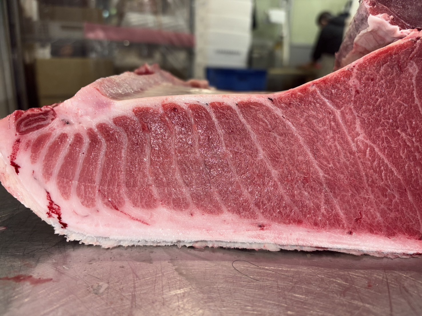 おはようございます 豊洲市場総合仲卸米川水産です。 本日、豊洲市場にて買付ました 宮城塩釜産 天然生本マグロ 巻網 魚体152.2㎏ 赤身、脂共に綺麗なマグロです。 是非宜しくお願い致します。
