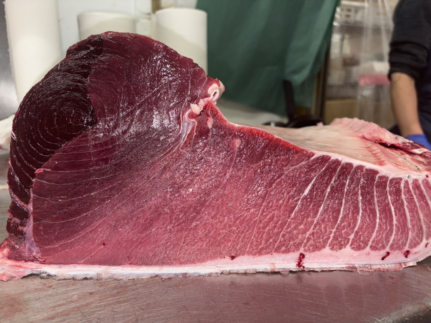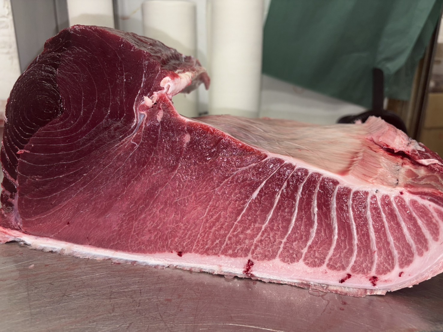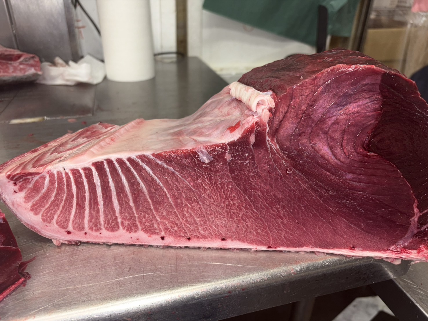 おはようございます 豊洲市場総合仲卸米川水産です。 本日、豊洲市場にて買付ました 岩手県大船渡産 天然生本マグロ 定置網 魚体142.4㎏ 赤身綺麗です。 赤身中心のマグロです、特価でのご案内! 是非宜しくお願い致します。