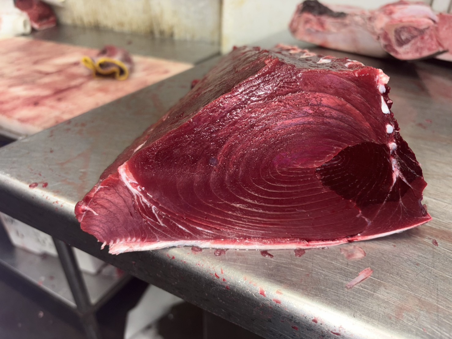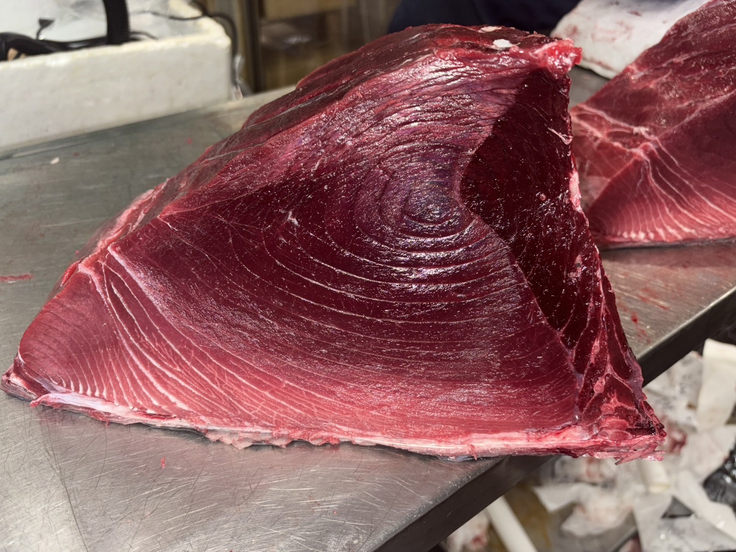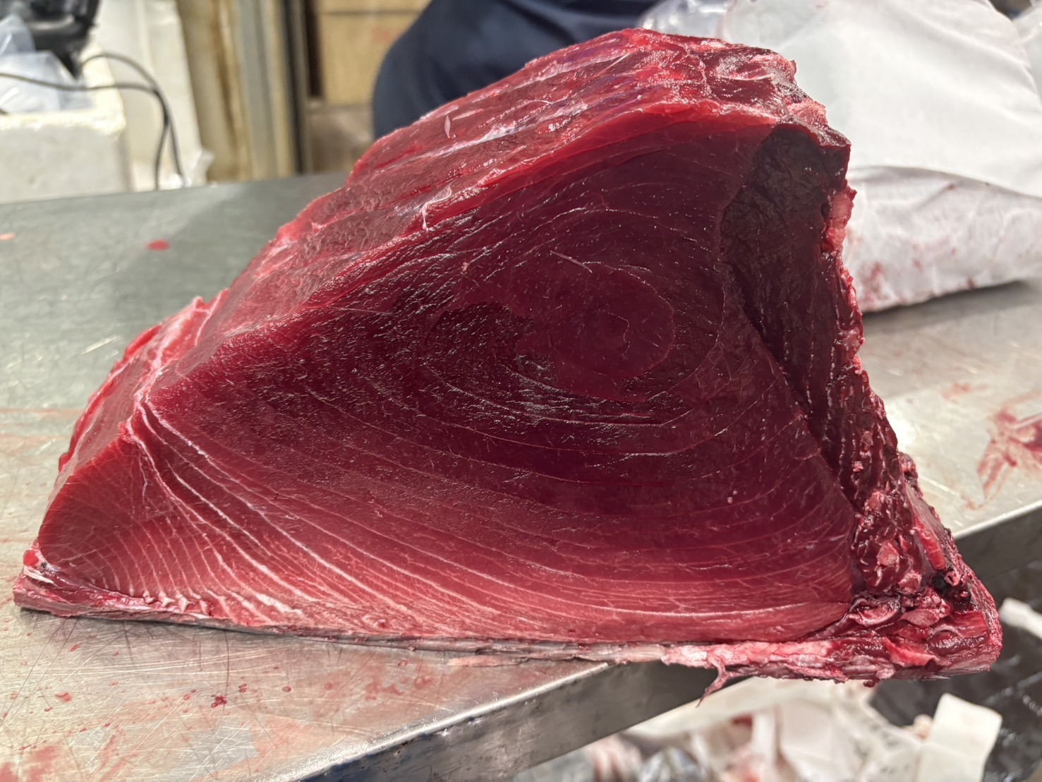おはようございます 豊洲市場総合仲卸米川水産です。 本日、豊洲市場にて買付ました 岩手県大船渡産 天然生本マグロ 定置網 魚体142.4㎏ 赤身綺麗です。 赤身中心のマグロです、特価でのご案内! 是非宜しくお願い致します。