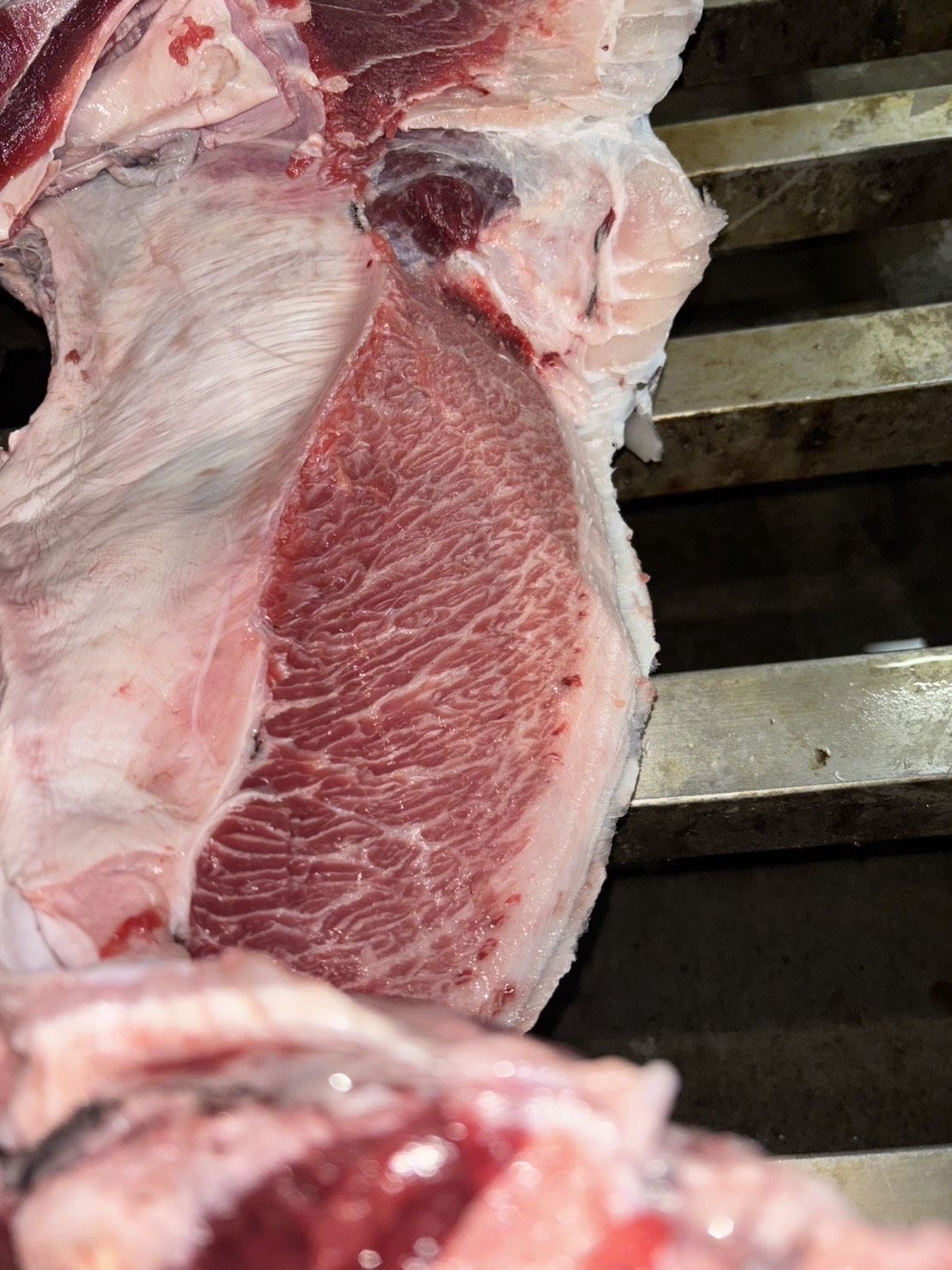 マグロの場合、部位によって筋が多い部分もありますのでご了承ください。(背上・背下・腹下)