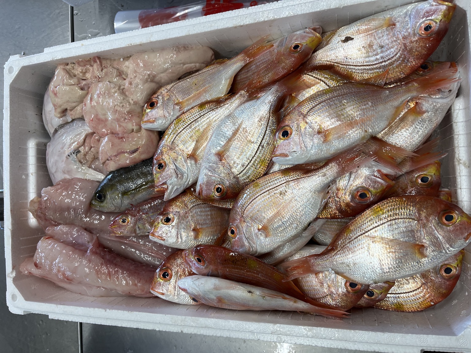 日帰り漁の底曳網で水揚げされました。 アンコウ2.6k イサキ0.2k イトヨリ0.1k レンコ28尾3.5k